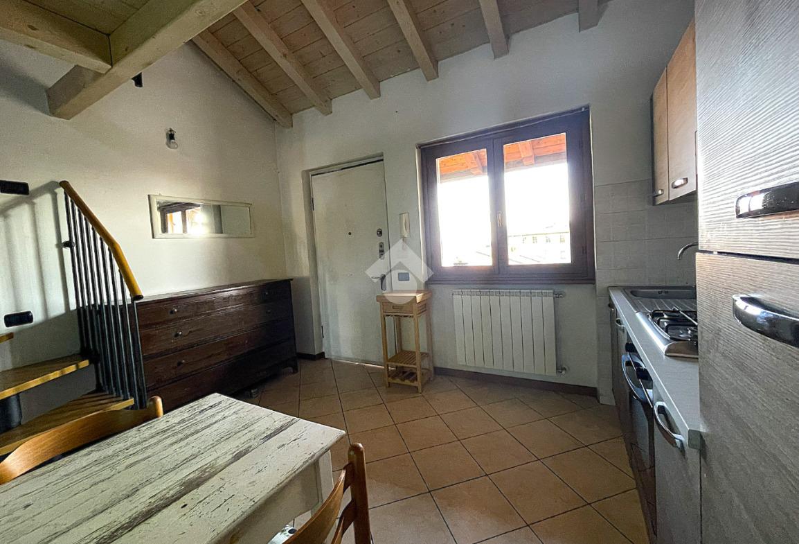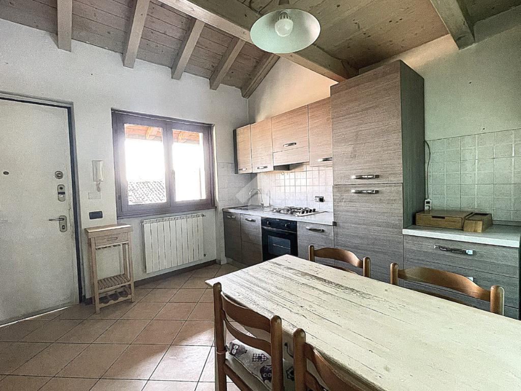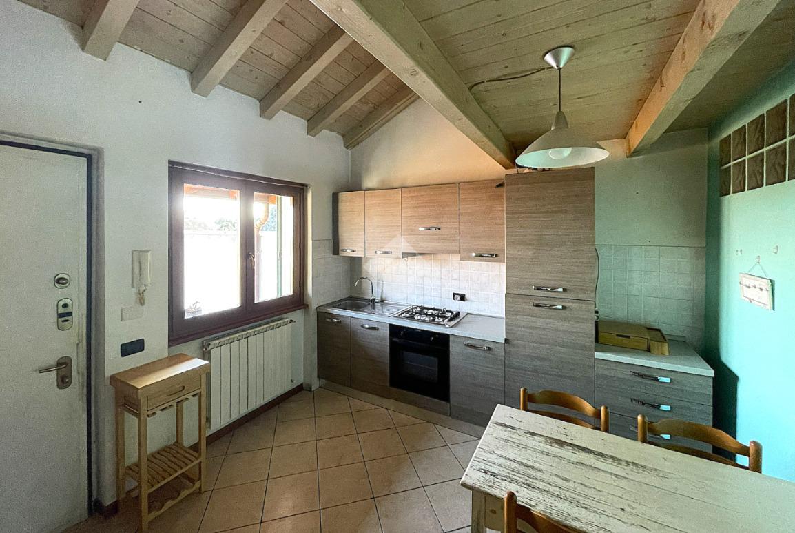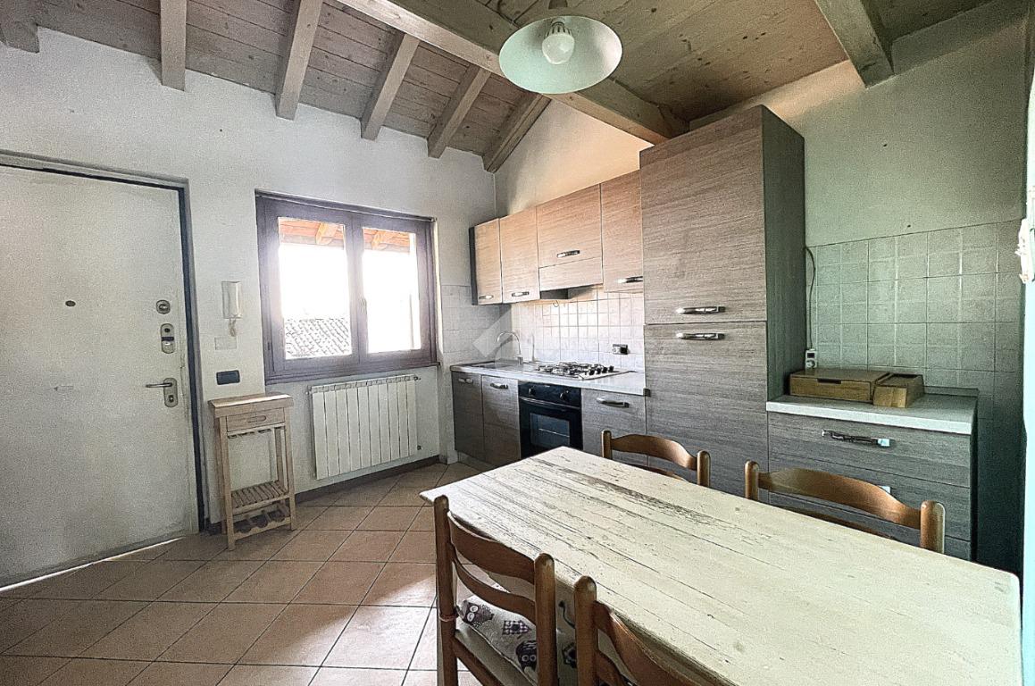 Bregnano - Appartamento di due locali con soppalco e travi a vista, posto al secondo piano non servito da ascensore, ubicato in contesto di corte ben abitato e dotato di posto auto coperto di proprietà.
