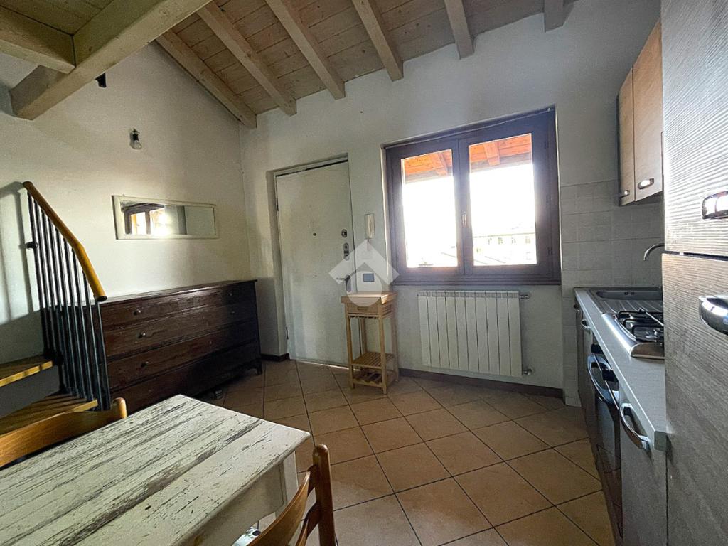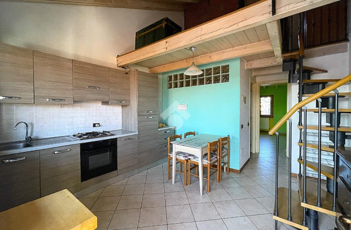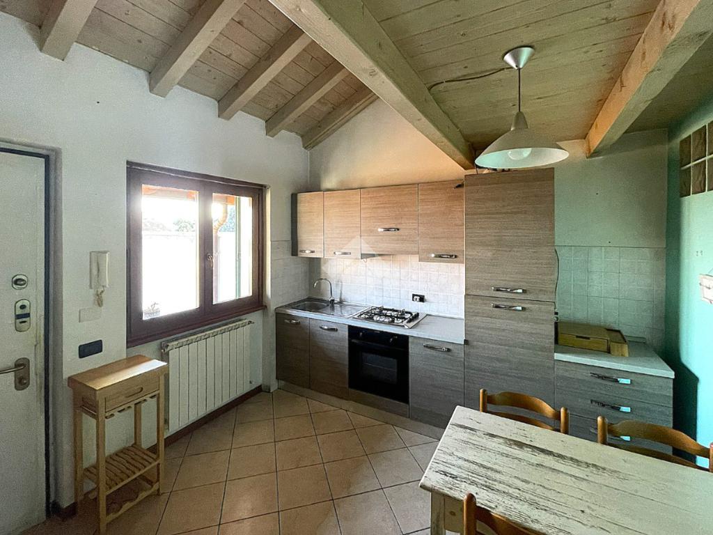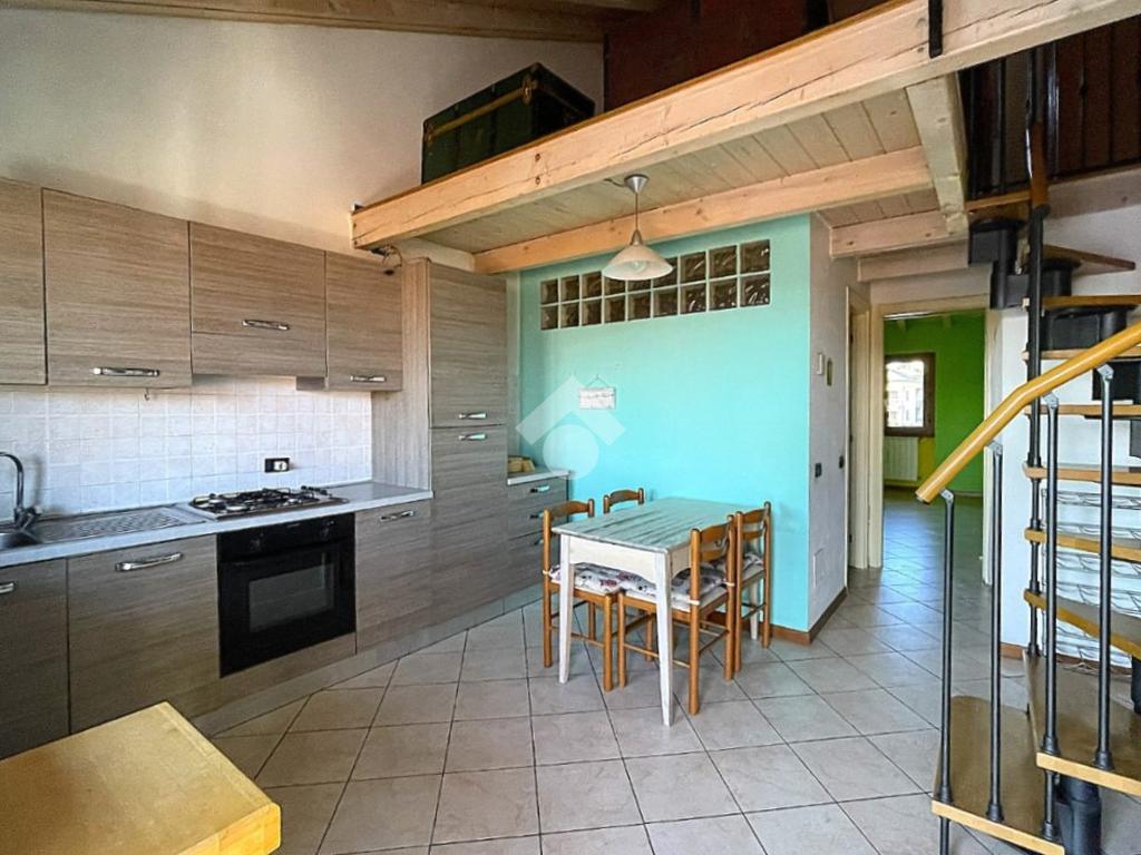 Bregnano - Appartamento di due locali con soppalco e travi a vista, posto al secondo piano non servito da ascensore, ubicato in contesto di corte ben abitato e dotato di posto auto coperto di proprietà.