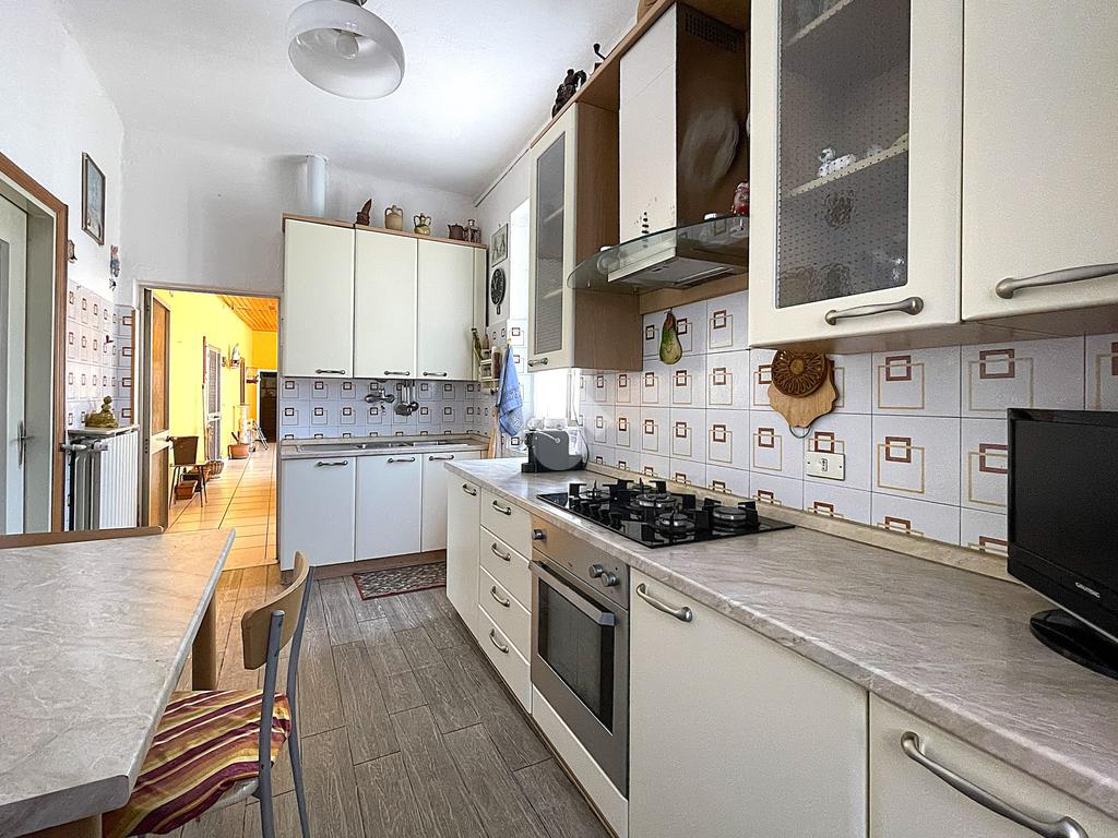 La cucina abitabile è completamente indipendente e dispone di un accesso diretto in area soggiorno e di un secondo accesso diretto nell'ampia area del porticato.