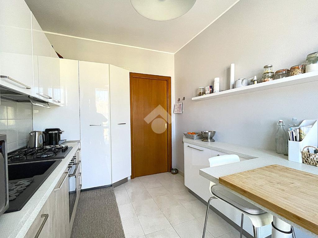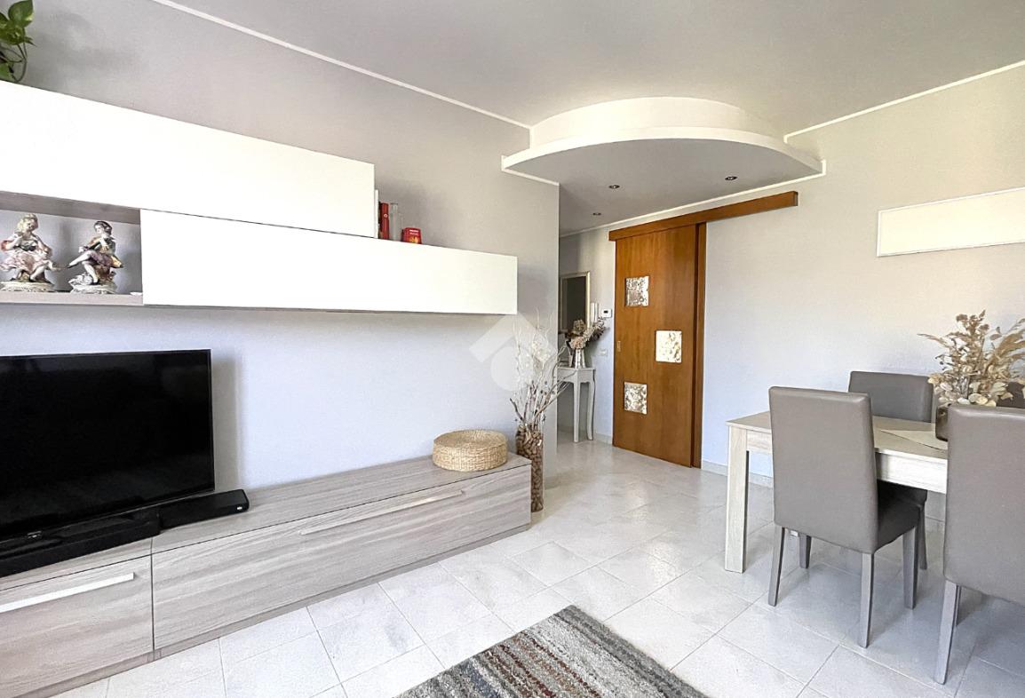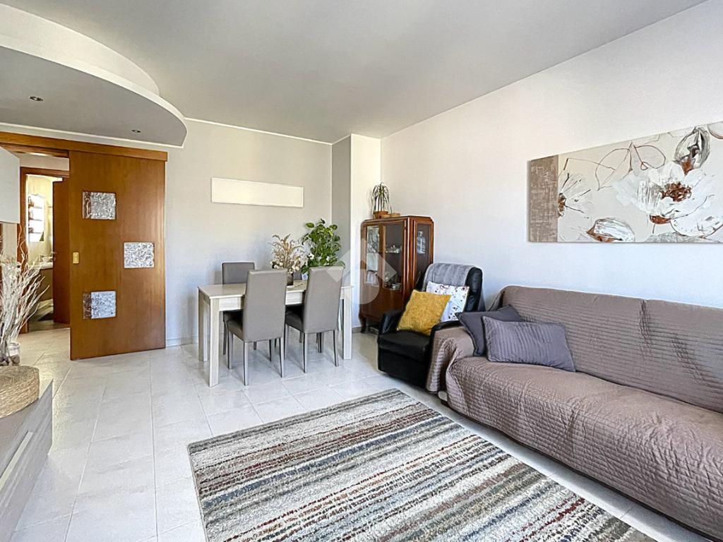 L'ingresso, molto accogliente, conduce direttamente all'area soggiorno, dotata di porta finestra con infissi in doppio vetro, dalla quale si ha accesso al balcone che, sviluppandosi in lunghezza, collega anche la cucina abitabile separata, anch'essa dotata di porta finestra.