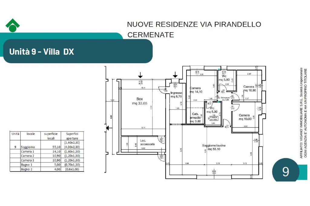 Unità 9 - Villa indipendente di quattro locali con giardino, doppi servizi, ingresso indipendente e box doppio in larghezza.