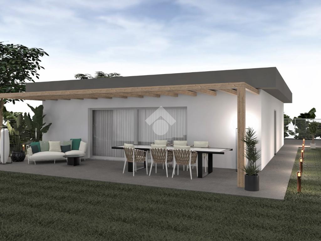 L'immobile, dallo stile moderno ed elegante, viene edificato tutto fuori-terra e gode di un ampio box doppio in larghezza adiacente all'abitazione e direttamente collegato anche dall'interno.