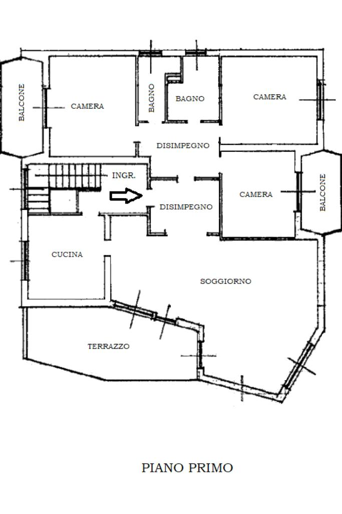 Una scala indipendente conduce al piano primo dove è ubicato un ampio quattro locali, dotato di doppi servizi e di un terrazzo collegato al soggiorno doppio.