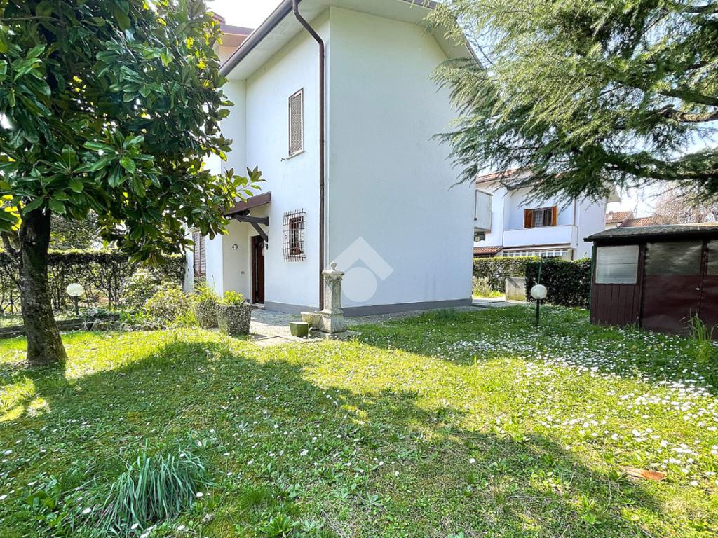 Un pratico cancelletto privato offre diretto accesso a questa splendida porzione di testa, circondata da un ampio giardino di proprietà di circa 350 mq, capace di regalare momenti di relax a tutti i suoi ospiti.