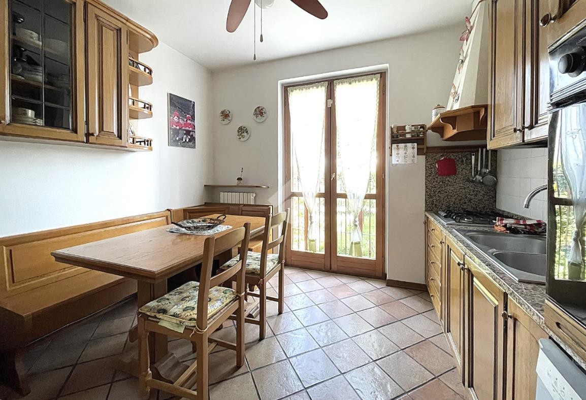 L'ingresso al piano terra conduce ad un doppio soggiorno, molto luminoso, e diviso in area pranzo ed ampia area relax, la cucina abitabile è prossima al soggiorno e gode di accesso diretto all'area del giardino privato. Sempre al piano terra è presente un locale servizi finestrato, molto pratico e funzionale in quanto munito anche di box doccia.