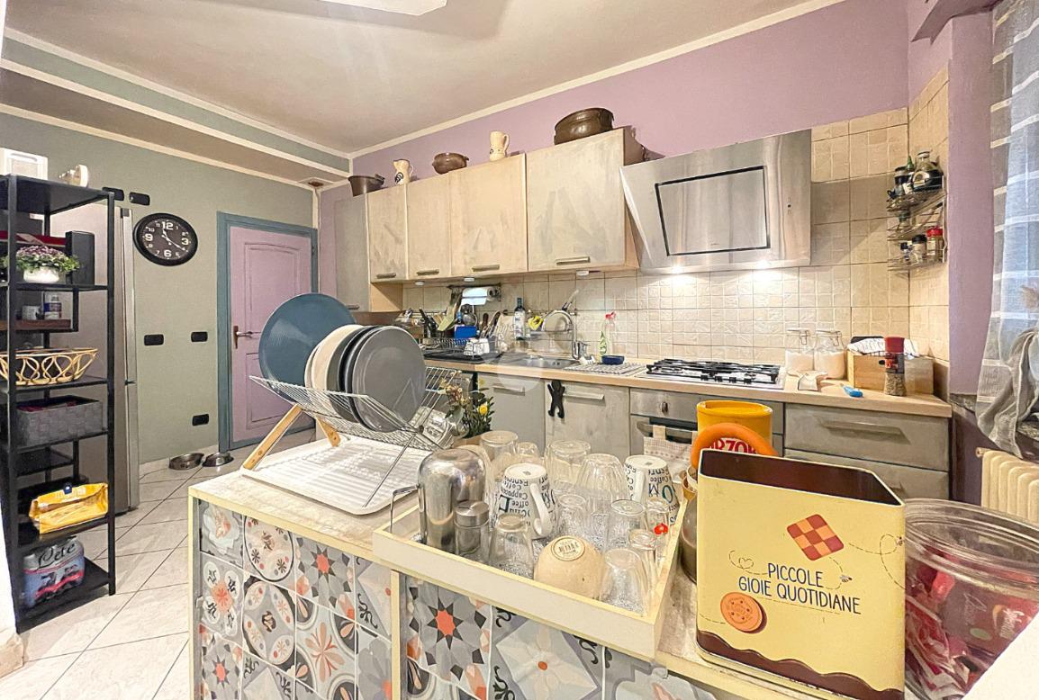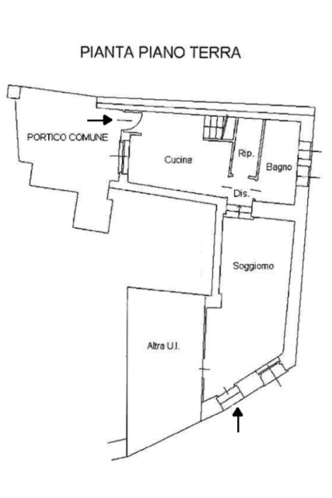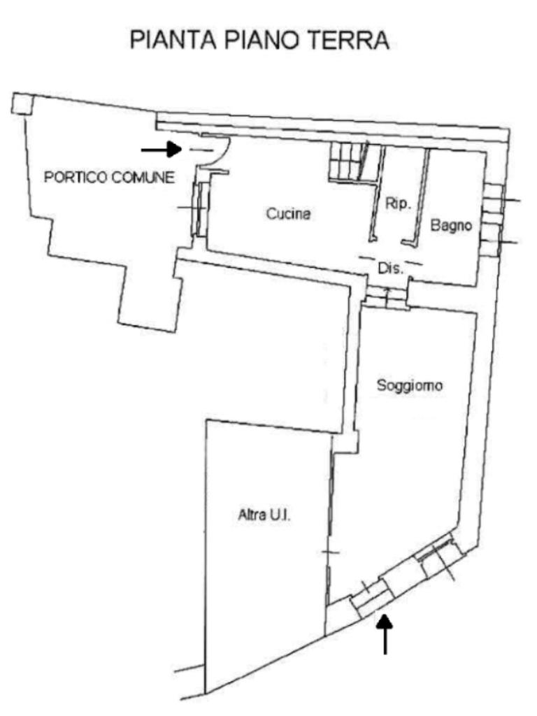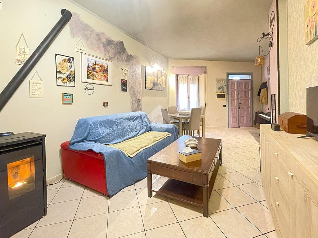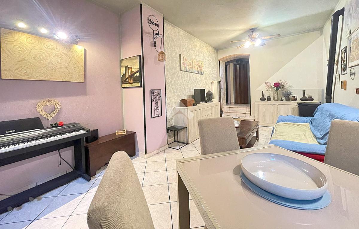 Appartamento di tre locali di ampie dimensioni disposto su due livelli abitativi, con due ingressi indipendente e senza spese condominiali, ubicato in un contesto cortilizio in pieno centro paese e comodo a tutti i principali servizi.