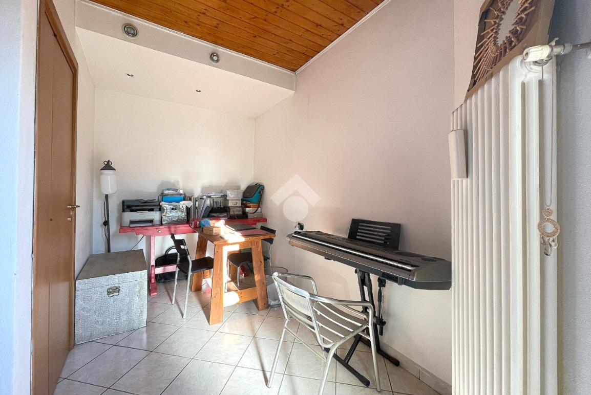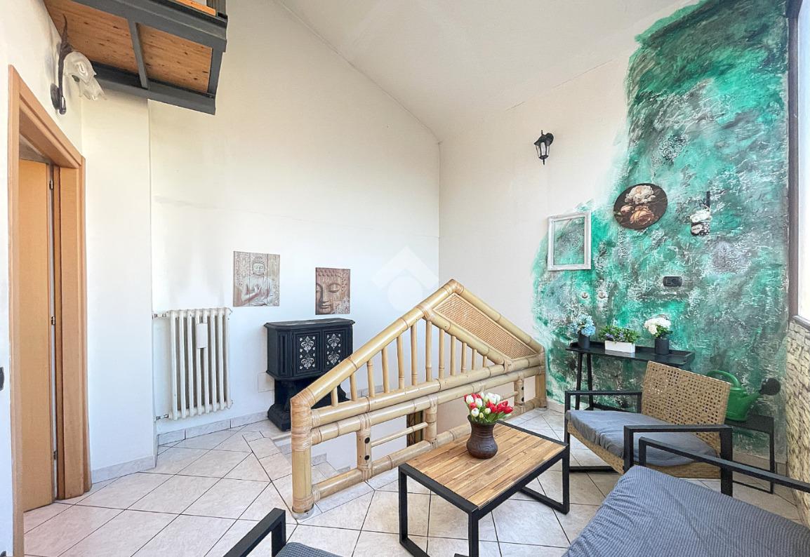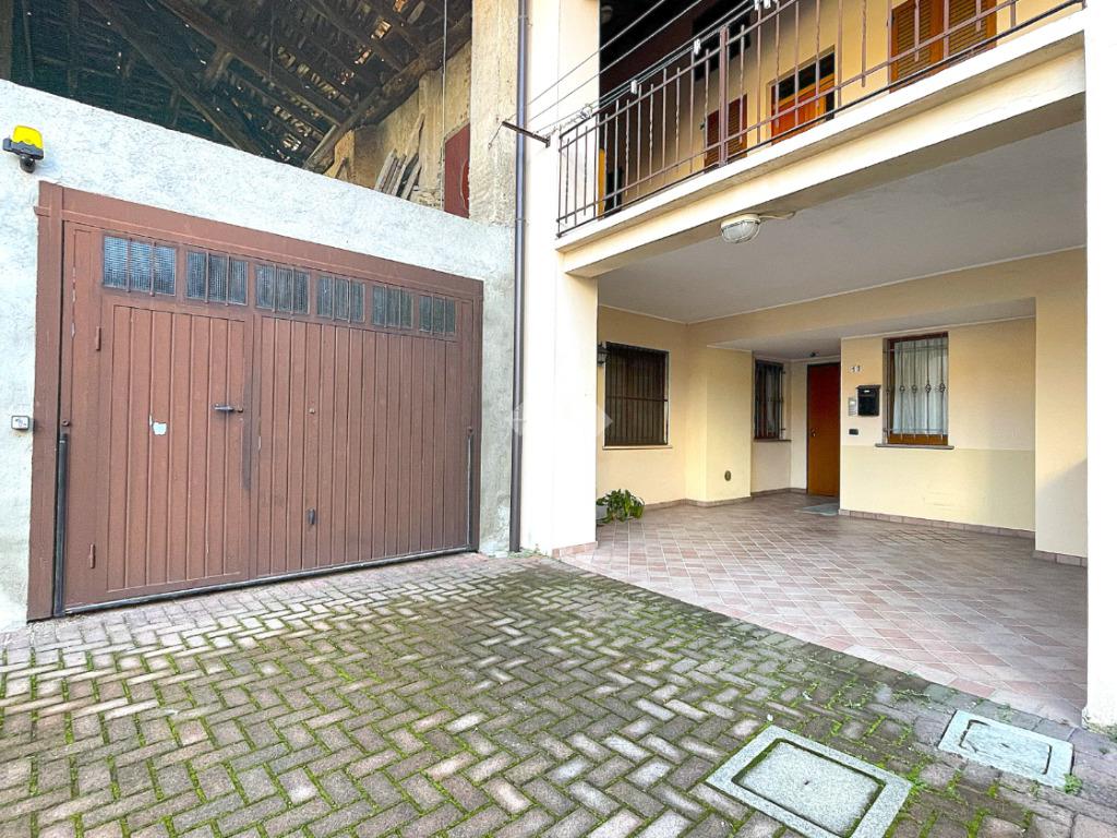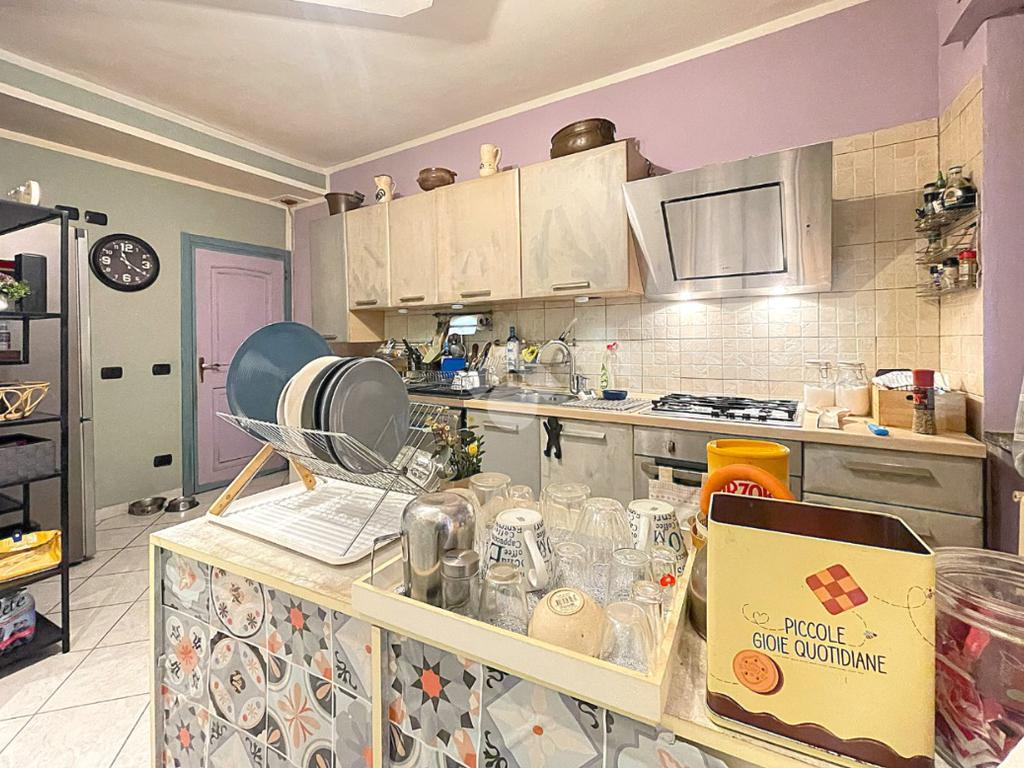 Appartamento di tre locali di ampie dimensioni disposto su due livelli abitativi, con due ingressi indipendente e senza spese condominiali, ubicato in un contesto cortilizio in pieno centro paese e comodo a tutti i principali servizi.
