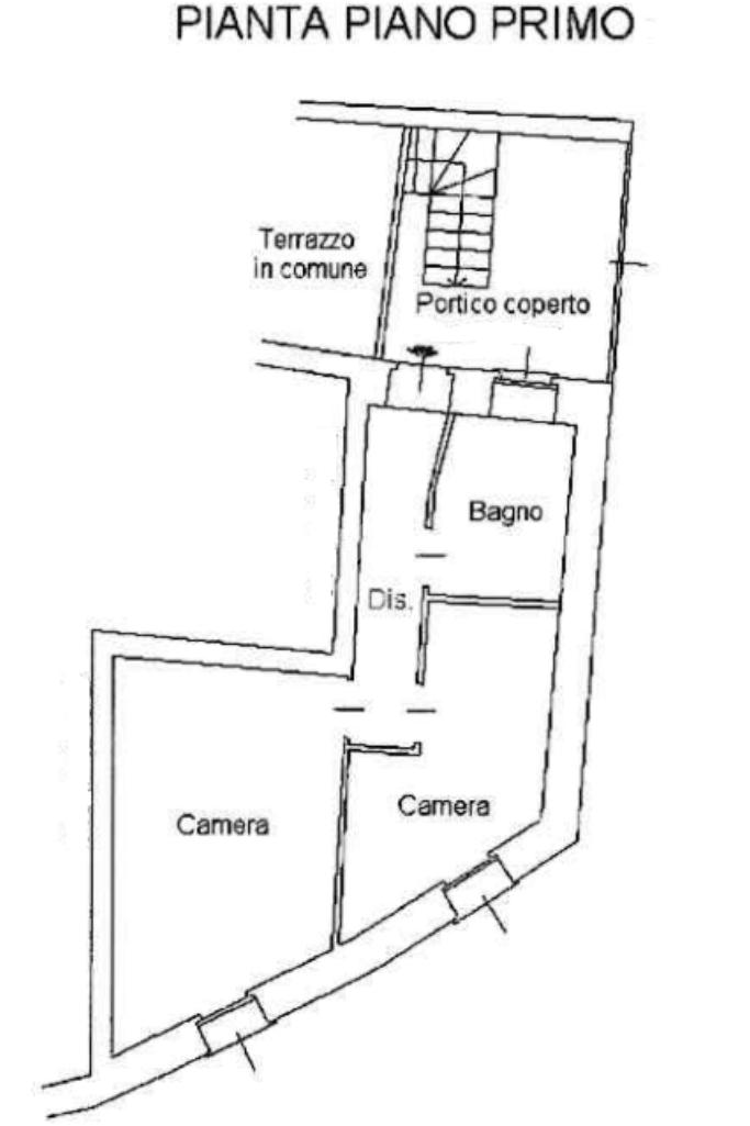 Una scala agevole conduce al primo piano dove è ubicata la zona notte servita da un'ampia camera matrimoniale, dalla cameretta, oltre che da un locale servizi finestrato e munito di box doccia.
